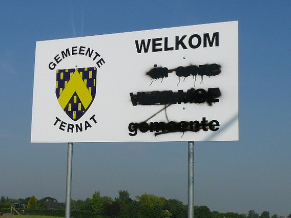 Sinds enkele jaren werden aan de invalswegen van Ternat borden geplaatst die ’toeristen’ en toevallige doortrekkers welkom heten. Het was onder andere de Vlaamse Volksbeweging (VVB) die de gemeente zo ver kreeg om dit te doen. “Wat is daar nu zo speciaal aan?” hoor ik u denken. Wel, het gaat hem niet enkel om de ‘welkom’ op die borden. De volledige boodschap luidt: “Gemeente Ternat, welkom in onze Vlaamse gemeente!”